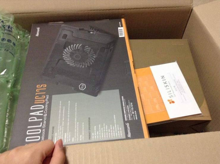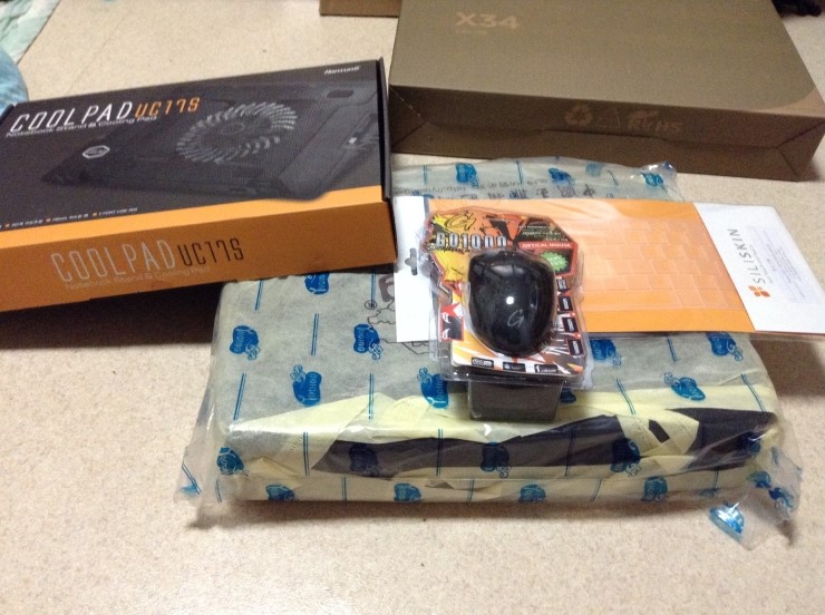 일단 큰박스에 X34을 제외하고 들어있던것은 쿨패드,마우스,키스킨,가방이 들어있습니다..