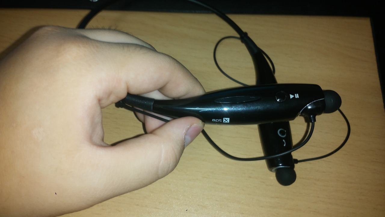 제품 오른쪽에는 (지원할지 의문인)apt-X로고 , 앞으로/뒤로 키 , 재생/일지정지 키, 이어폰(R) 이 있습니다.