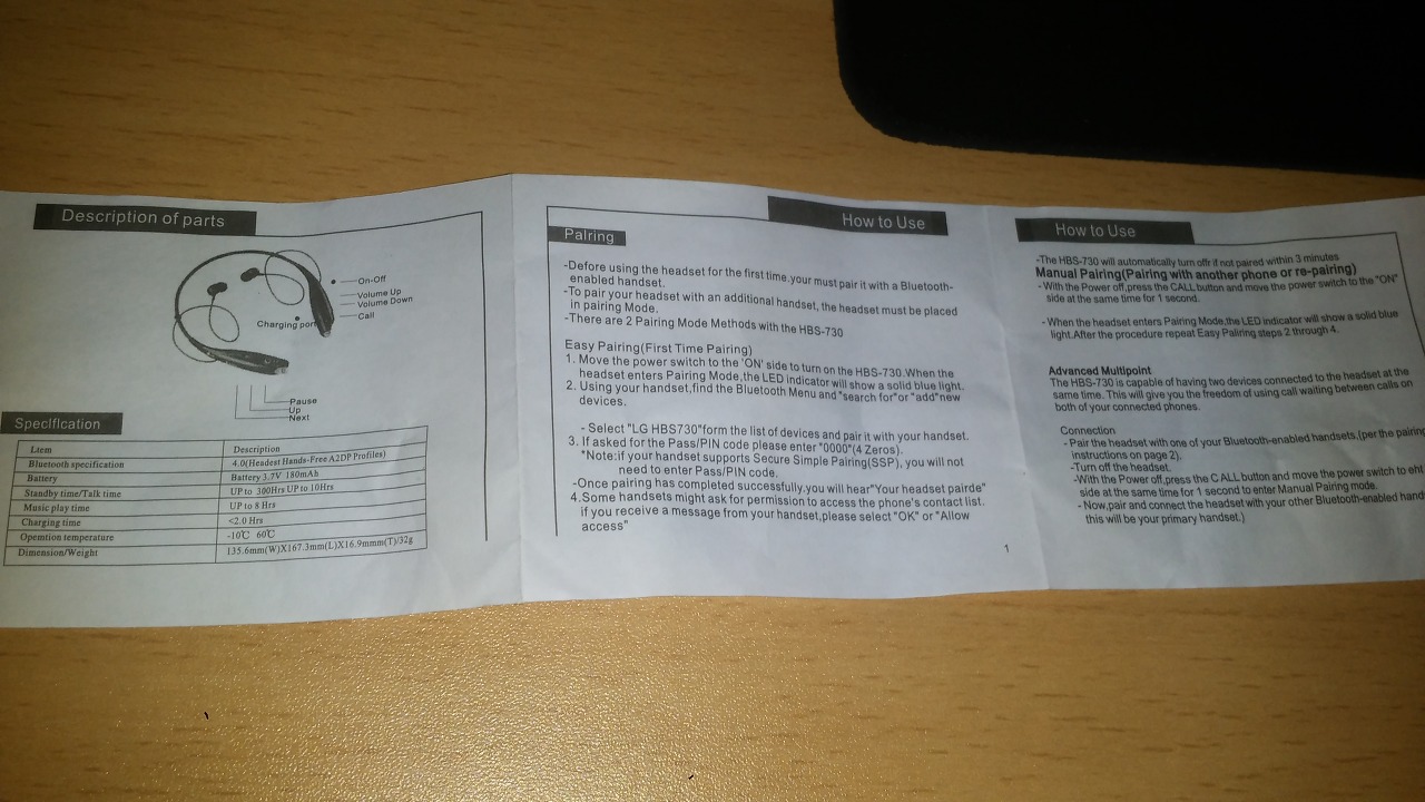 구성품은 짭HBS-730, 100원짜리 USB케이블 보다더 못한 USB케이블 , 이어폰케이블 , 사용설명서입니다. 아주저렴하게 보입니다...